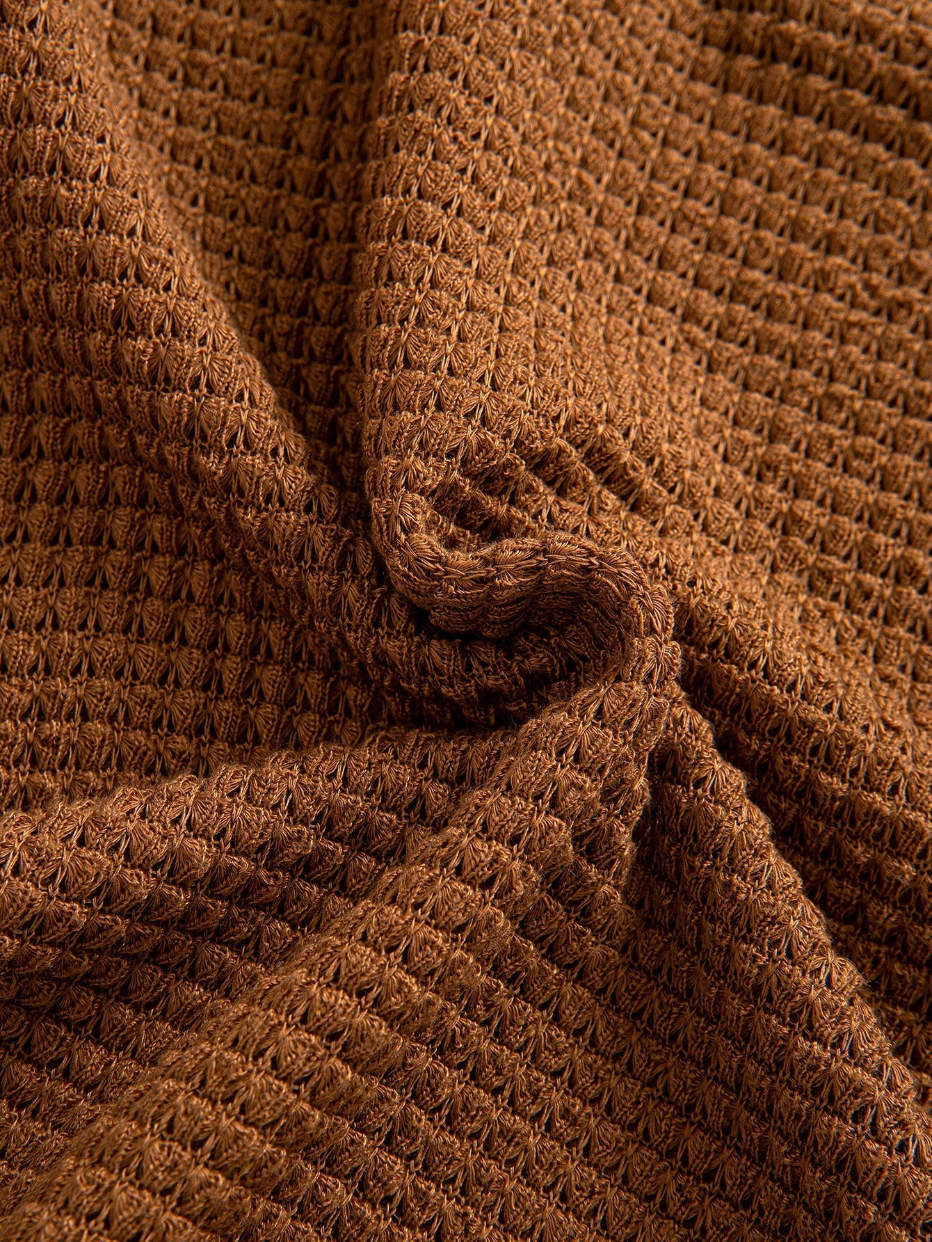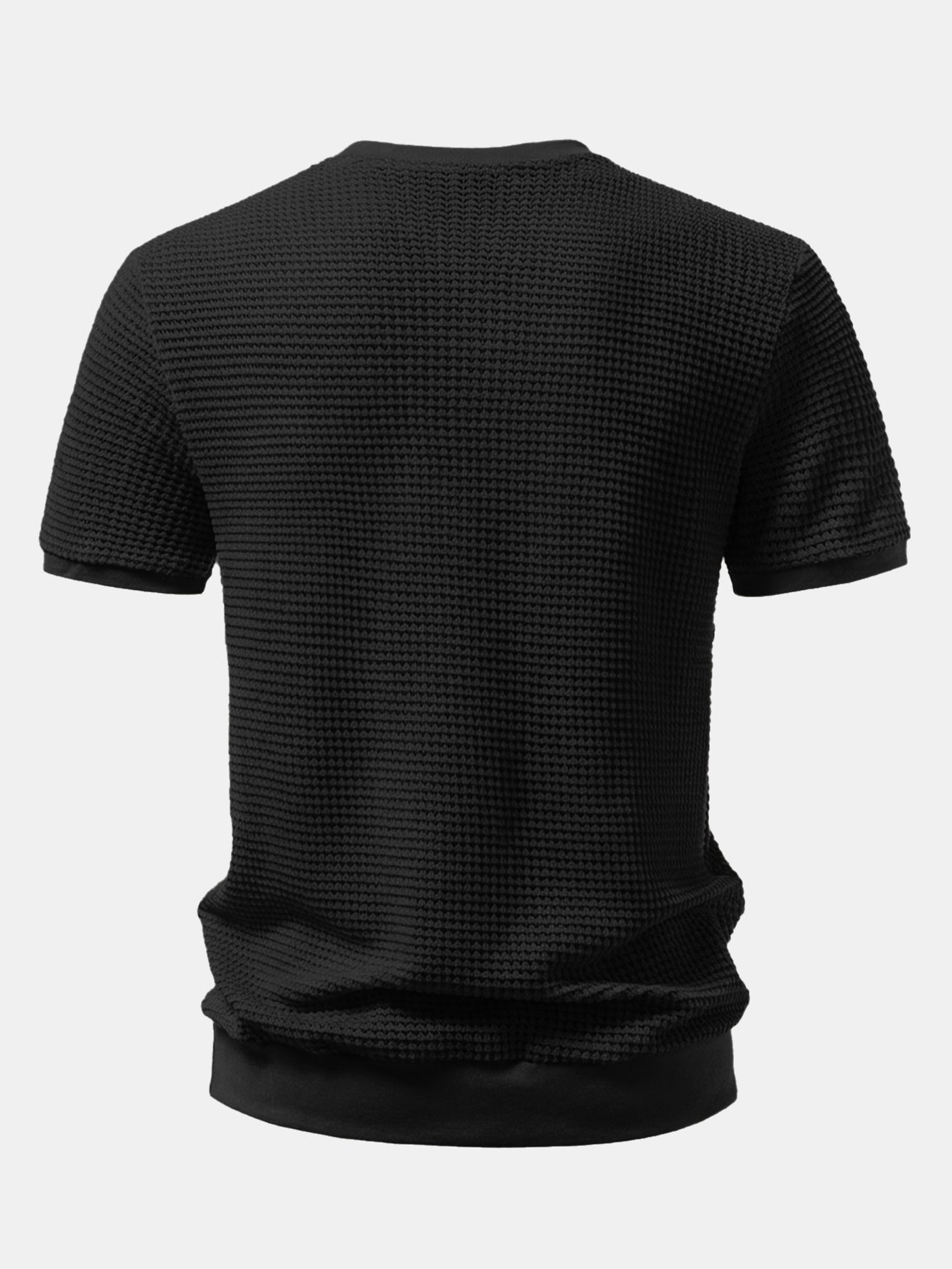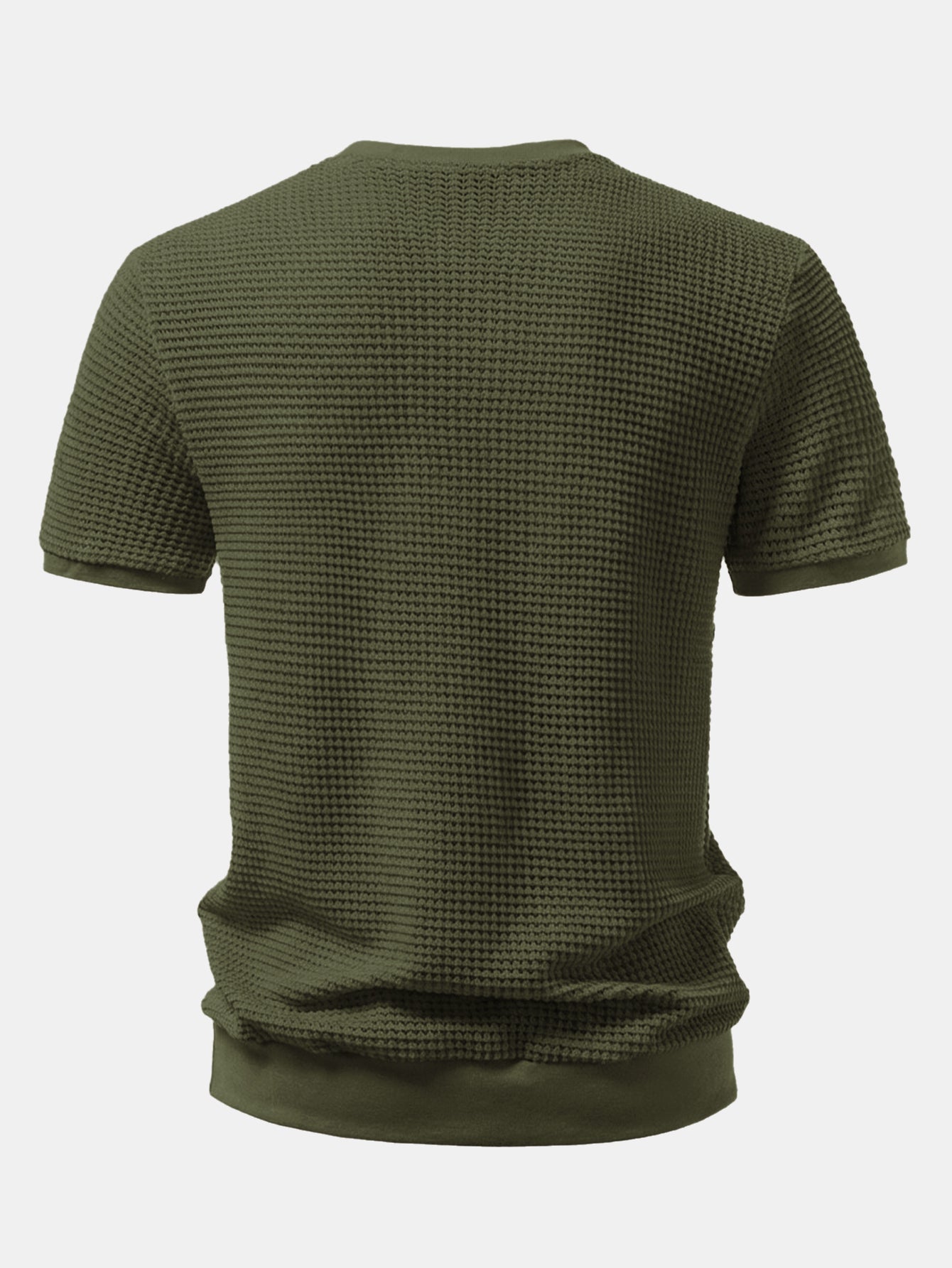 Waffle Textured Ribbed Hem Henley Shirt